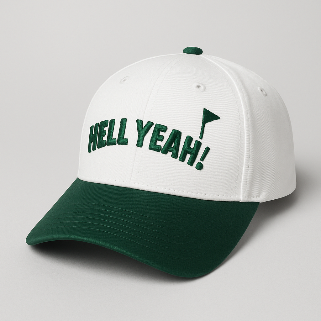 Bring some Master's magic to your round. The “Augusta Green” snapback pays homage to the hallowed grounds of Georgia with a crisp white crown and deep green bill. Finished with our embroidered Hell Yeah! flag logo, it’s a classic look for the player who shows up to win — or at least look damn good doing it.
